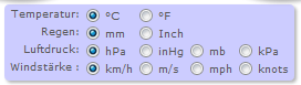 In diesem Bereich können die Einheiten der Anzeigen nach Bedarf eingestellt werden. |