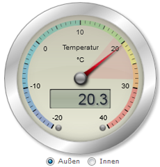 Die Anzeige kann zwischen Innen- und Außentemperatur umgestellt werden. |