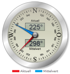 Blauer Zeiger / untere Anzeige: Durchschnittlich errechnete Richtung der letzten 5 Minuten. |